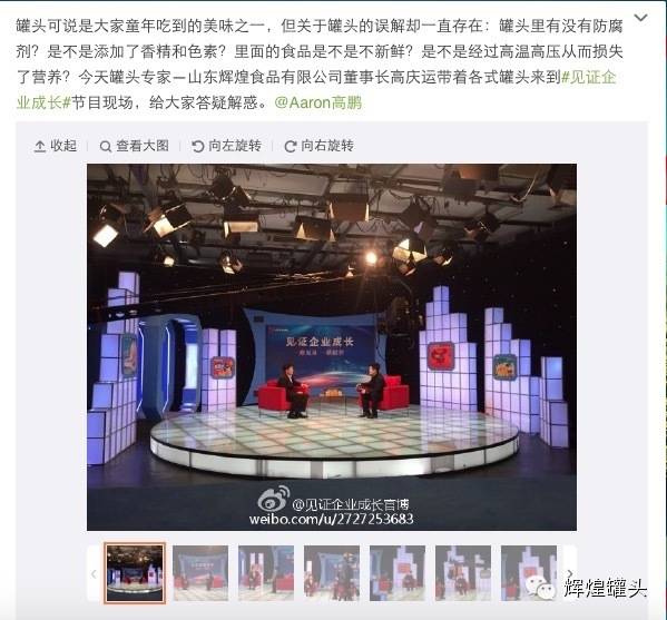 20141223日山東輝煌食品有限公司董事長(zhǎng)高慶運(yùn)先生,作為罐頭行業(yè)的專家, 應(yīng)邀參加CCTV“見證企業(yè)成長(zhǎng)”欄目,為消費(fèi)者解讀罐頭